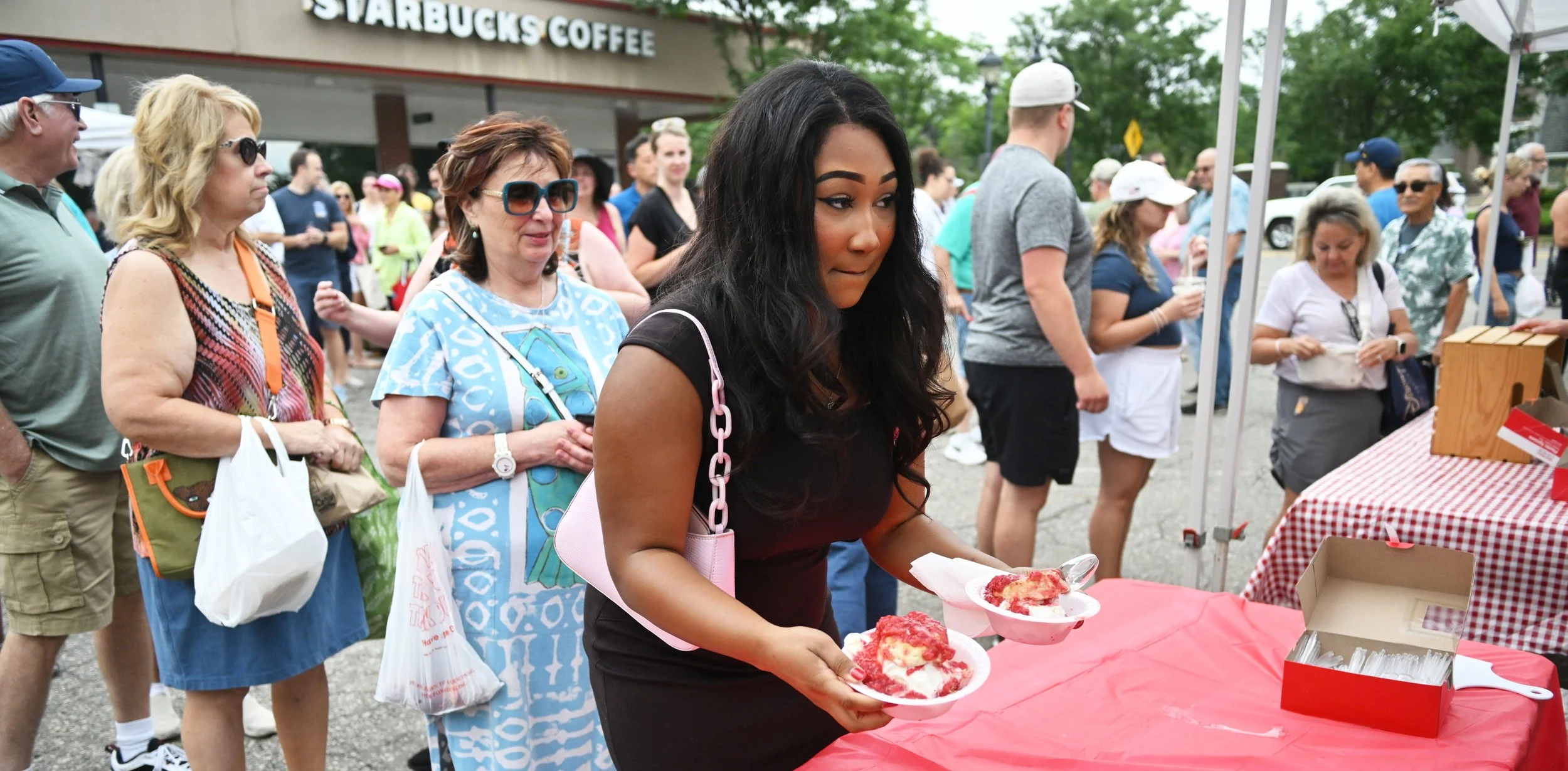 Mayor Joe LaRussa helps dish out the ice cream for the twice-delayed Strawberry Shortcake Day.