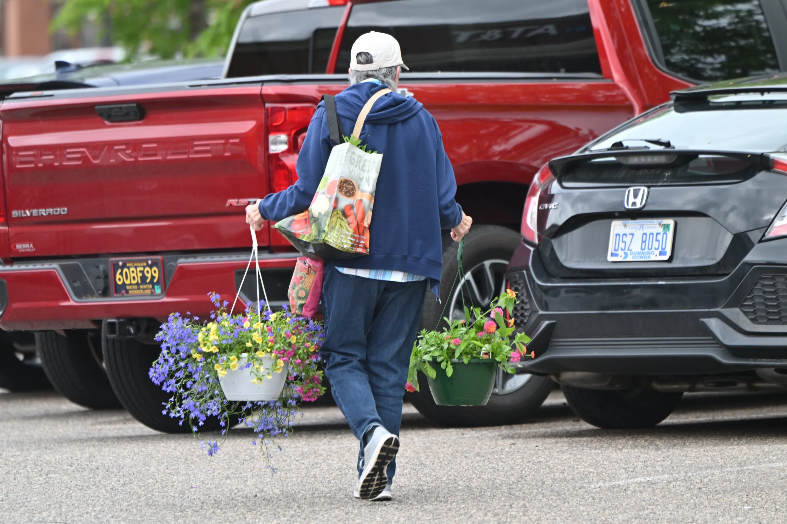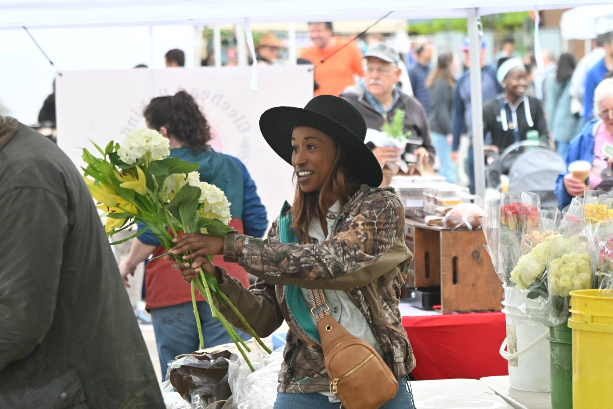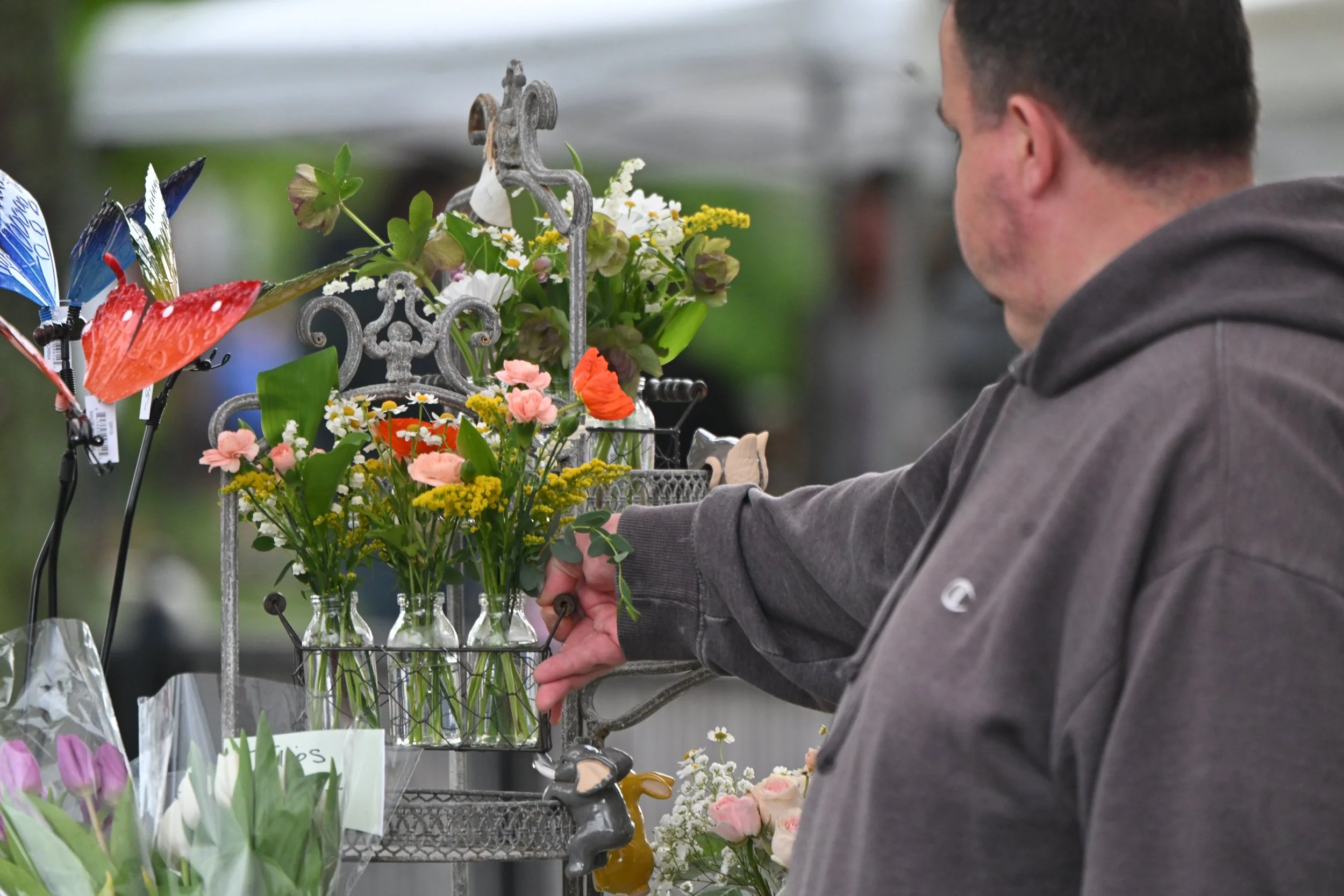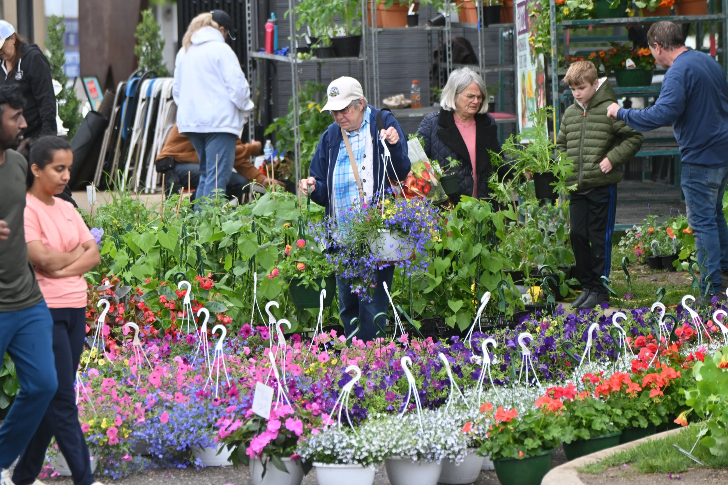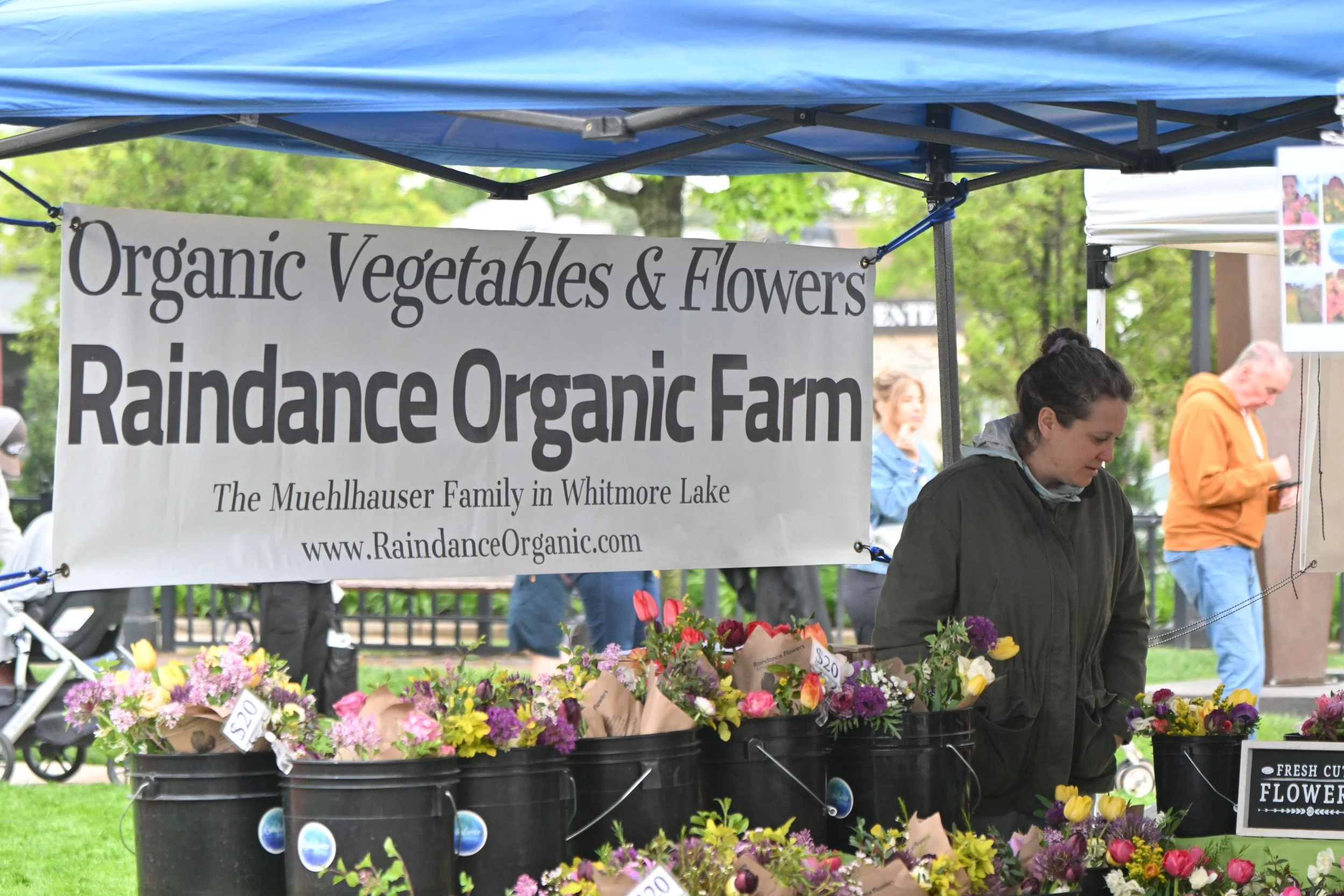 Oh, sunshine would have been nice, but Flower Day at the Market generates its own power, with or without a solar shine. Shoppers could choose from a rainbow of colors as well as size, shape, potted, stems. Bottom line: You can’t keep a good blossom down.