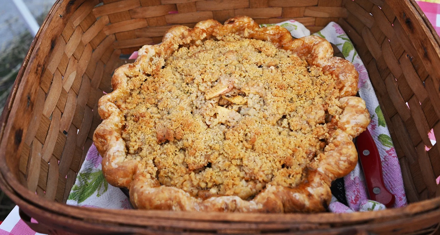 Second-Place Red Ribbon: Apple Pie with a Gouda Crust and a Sage Crumble Topping, baked by Mary West